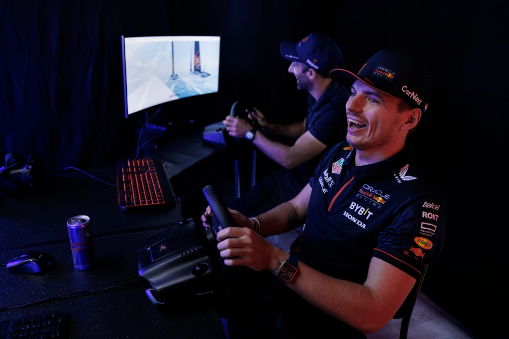 In a whirlwind visit, F1 triple world champion Max Verstappen squeezed a full schedule into just under two hours – experiencing the team's high-tech simulator then following alongside BoatZero on a chase boat at nearly 100 km/h. Accompanying him was legendary F1 designer Adrian Newey, who stayed on to continue exchanging insights with the Alinghi Red Bull Racing design team.