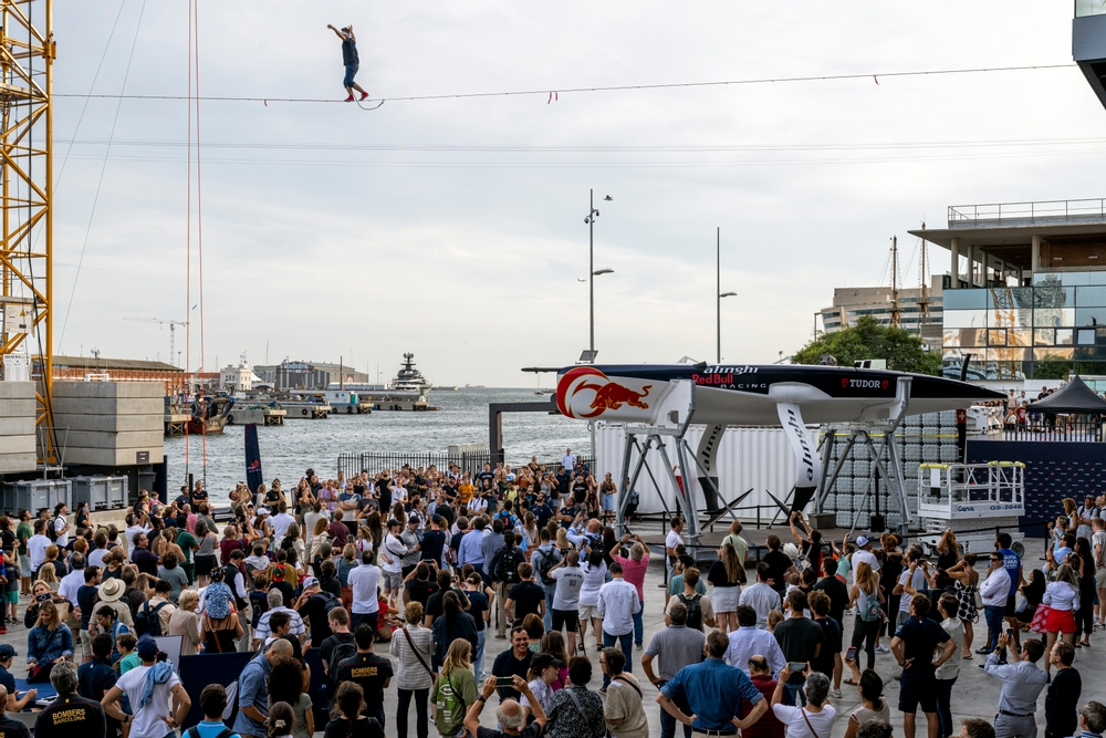 The slacklining phenomenon Jaan Roose holds a special place in Alinghi Red Bull Racing’s story. Twice he showcased his skills for the team: first during the Base Opening – performing a daring act between the Base and the crane – and then again for the Barcelona public on our Open Doors Day.